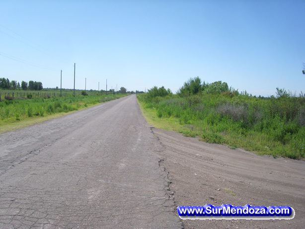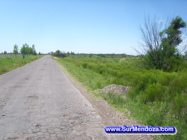 Esta foto muestra un tramo de la Ruta 200 que se debe recorrer desde la ciudad de Gral. Alvear de camino al fraccionamiento "La Oportunidad", foto de verano. |