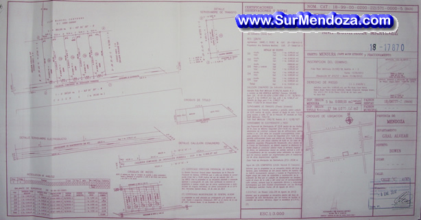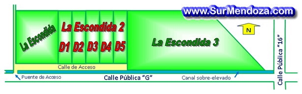Fraccionamiento Rural "La Escondida II" - Concluído Ubicación: El Fraccionamiento Rural "La Escondida II" es la subdivisión de la fracción D de la finca "La Escondida" y se encuentra en el distrito de Bowen, departamento de Gral. Alvear, Mendoza. Tiene rápido y cercano acceso a la ruta nacional Nº 188, tras 800m de excelente ripio y 1200m de asfalto. Esta ruta es la que se toma en Junín si viene de BsAs y que conduce a la ciudad de Gral. Alvear. Las fracciones se acceden a través de un amplio callejón privado, cruzando un puente sobre un canal de riego emporlado sobreelevado, que conduce sus aguas tierras abajo. Ubicación referencial: - A 11.2Km al Este de la ciudad de Gral. Alvear (linea recta) - Latitud: 34°57'30.30"S Perfil del fraccionamiento: Rural. Estas fracciones son aptas tanto para construir y vivir allí, como para la producción agrícola intensiva. Por su extensión, calidad de tierra y acceso al agua de riego, se puede producir para autoconsumo y comercializar los excedentes. Para que la producción sea rentable y autosustentable es preciso la elaboración de los frutos de la tierra, haciendo vino casero, dulces, jaleas y mermeladas, frutos en aceite, en almíbar, chacinados, frutas secas. Los productores de la zona ofrecen sus productos en la feria municipal y en el estacionamiento sobre una avenida importante, a metros del monumento principal de la ciudad. Descripción: De linda tierra agrícola, esta finca fue plantada antiguamente, por eso está toda nivelada y aún se ven los canales de riego surcándola. Desde hace tiempo está toda en blanco, es decir sin plantaciones, por lo que se encuentra descansada, lista para comenzar a sembrar. Son muchas las opciones para sembrar, todo dependerá de la idea de cada propietario. Para ello dispone de agua de riego de carácter definitivo por el total de la finca. Generalmente el tipo de plantación es intensiva. Puede ser no estacional, es decir que las plantas duran muchos años (uva, ciruela, durazno, damasco, pera, membrillo, aceituna, cereza, granada) o estacional, es decir que la planta dura una sola cosecha (tomate, ajo, ají, cebolla). En la fracción D3 hay una construcción precaria pero firme y algunos árboles alrededor. Las fracciones pueden disponer del servicio eléctrico. Cada propietario lo pedirá si lo desea a la empresa COSPAC, prestadora del servicio en la zona. Su tel. es el (02625) 480039 y está ubicada en Bowen sobre la calle Centenario, en el centro. Textualmente: "COSPAC de Bowen Ltda informa: que la propiedad se encuentra dentro del Area de Concesión de esta distribuidora, por tal motivo es factible la conexión del servicio eléctrico, según lo establece el E.P.R.E." También pueden disponer del servicio de agua potable. En este caso los propietarios interesados pueden pedirla a la empresa de aguas Los Compartos. Su tel. es el (02625) 15660947 y está ubicada en Bowen, en la intersección de las calles 10 y G. En este caso los propietarios deberán pedir no solo la conexión, sino también una obra para la instalación del caño maestro por el callejón interno. El costo de esta obra se estima en $2000.- por fracción, si todos los propietarios de las fracciones desean la obra. Textualmente: "Agua de Los Compartos (Unión Vecinal El Toscano) informa: que la propiedad no se encuentra dentro del Area de Servicio, pero tratándose de tan poco metros de nuestra red no habría inconveniente siempre y cuando la Propietaria/os se hagan cargo del costo de materiales y construcción de la extensión de Red por el callejón de servidumbre así también como el cruce de la calle y del canal con el correspondiente caño camisa, siempre bajo la supervisión técnica y materiales homologados que esta Entidad conjuntamente con los técnicos del Municipio soliciten". También es posible hacer una perforación para obtener agua. Aunque la primera napa se encuentra a unos 4-6m, el agua no es tan buena. Es preferible llegar hasta la segunda napa a unos 12-20m para obtener una agua de mejor calidad. La finca está rodeada de fincas productivas en varias de las cuales viven sus cuidadores o los propietarios, por lo tanto hay varios vecinos cerca. La zona es de cultivo intensivo frutícola (uvas, ciruelas, damascos, olivos, peras) y alrededor hay varias fincas que tienen casas habitadas por sus propietarios o por empleados y sus familias. Es una zona realmente tranquila, rural, con otros tiempos, una vida más sana, creería que una vida mejor. Nosotros los adultos y principalmente los chicos, la disfrutan mucho, lo digo por experiencia personal: nosotros éramos de BsAs. Hay una escuela primaria a 800m, sobre la calle 16. Gral. Alvear, es una activa ciudad, limpia y ordenada, pero principalmente segura. Tiene un gran centro comercial que se extiende sobre las avenidas Alvear Oeste, Libertador Norte, Alvear Este y Libertador Sur, en orden de importancia. Estas avenidas parten del monumento al Gral. San Martin (único donde el héroe argentino aparece de a pie), intersección de las rutas Nº188 y Nº143. La ruta Nº 188 es la que se toma para ir a Bs As y la Nº143 hacia el norte va a San Rafael y hacia el sur a la ciudad de Neuquén. Hay 2 bancos, varios supermercados, tiendas de importancia, cines, la iglesia frente a la hermosa plaza departamental, centros religiosos de otras confesiones, bares, restorantes, heladerías y pubs con espectáculos nocturnos, boliches para jóvenes, salones de baile para adultos y negocios varios como corralón de materiales, ferreterías, repuestos de autos, etc. Abundan las escuelas primarias, hay colegios secundarios técnicos, comerciales y bachilleres, públicos y privados. También hay instituciones terciarias y aula virtual universitaria. Un moderno y amplio polideportivo municipal, que es orgullo de todo alvearense está abierto para el ejercicio y esparcimiento de la población (cuenta con piscinas no climatizadas y colonia infantil de vacaciones). Bowen es un poblado