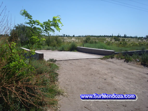 Para acceder a la fracciones se debe atravesar este puente sobre el canal de riego emporlado, que está elevado del nivel del suelo entre 1.5 y 2.5 metros. Este canal riega zonas varios kilómetros aguas abajo, no riega las tierras de La Escondida II. |