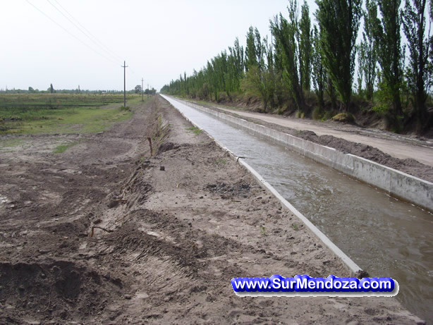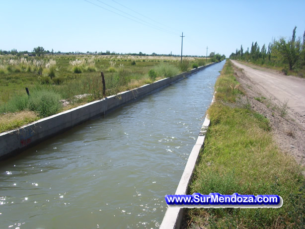 Este canal de riego emporlado sobre-elevado oculta o esconde la propiedad: no es visible desde la calle. Este canal riega zonas varios kilómetros aguas abajo, no riega las tierras de La Escondida. |