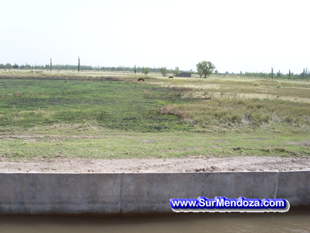 Se puede observar el alambrado que hay sobre el límite norte de todas las fracciones. El canal de riego que se vé es el que corresponde a todas las fracciones, o sea que es el que se tiene que utilizar para abastecer de agua de riego a todas las fracciones. Está medio borrado: hace tiempo que no se utiliza porque no hay nada plantado. |