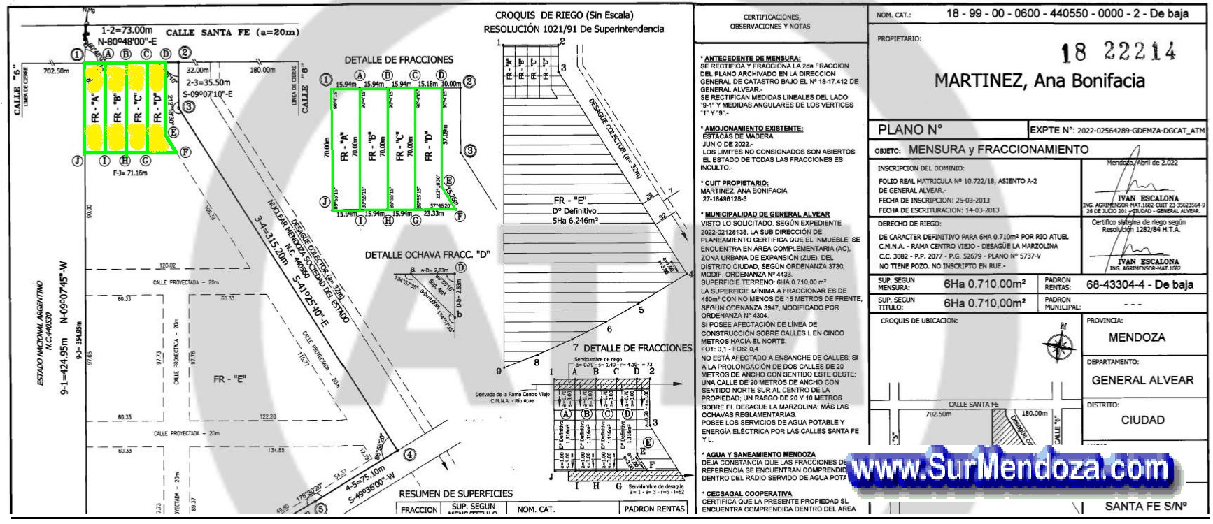 Este es el plano aprobado, documento necesario para poder realizar la escrituración al nuevo dueño. Con el número de plano se puede corroborar fácilmente que ha sido registrado como corresponde pues se encuentra en el sistema informático de Catastro de la provincia de Mendoza. |